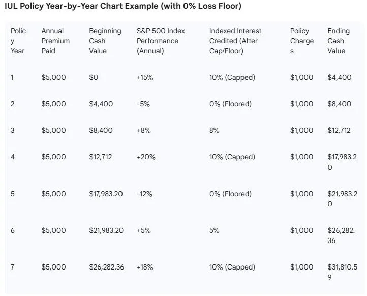 IUL policies typically have a guaranteed minimum interest rate (floor) to protect against market losses.